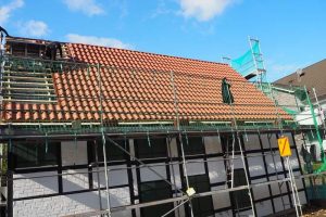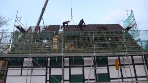 Als wir die Idee hatten, die Sanierungs- und Restaurierungsarbeiten an und um „Reumkes FachWerk“ im Hammer Stadtbezirk Bockum-Hövel mit dem I-Tüpfelchen zu krönen, nämlich mit einem neuen Dach, da kannten wir die Größe dieser Herausforderung nur ungefähr.