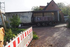Und es hat BUMMS gemacht! Und wir dachten wir könnten an unserem letzten Urlaubstag noch etwas liegen bleiben! Es war gerade 7.00 Uhr. Eine Fuhre Holz wurde vor Reumkes Fachwerk abgeladen. Die Dachdecker begannen mit der Arbeit und der erste Bauschuttcontainer traf ein. Gleich kommt noch der LKW mit den Dachziegeln. Und wir mittendrin! In einer Baustelle, an deren Ende etwas richtig Schönes stehen wird.