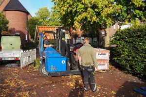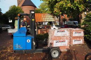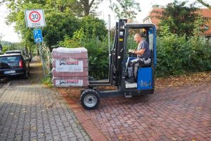 Das Ausladen der knapp zehn Tonnen dauerte weniger als eine halbe Stunde und schon war der „Kleinwagen“ auf dem Weg zum nächsten Kunden. Es gab wieder etwas mehr und doch noch zu wenig Licht. In einigen Tagen soll alles erledigt sein, wenn auch die Zimmerei und der Malerbetrieb die Termine einhalten. In jedem Fall ist das Ganze für uns schon ein kleines Abenteuer.
