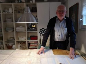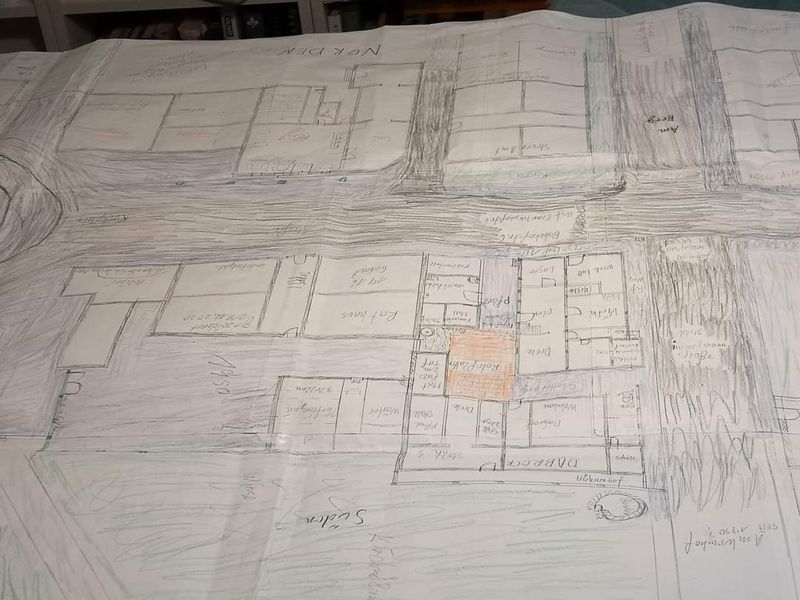 Christianes Cousin Franz-Josef steht gut gelaunt mit einem etwas größeren Plan vor der Tür. Er hat aus dem Gedächtnis das Höveler Dorf und den Pankratiusplatz in den 50ern des vergangenen Jahrhunderts aufgezeichnet, dazu die Betriebsinhaber und weitere hilfreiche Infos vermerkt. Reumkes FachWerk hatte damals die Postanschrift „Dorf 1“.
