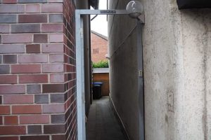 Der schmalste Durchgang – 40 Zentimeter – Heute noch sichtbar! Hier hinter stand das schmalste Haus