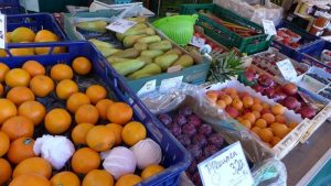 Wenn man dann an den Obst- und Gemüseständen so rein hört, bekommt man eine Vorstellung, dass MarkthändlerInnen durchaus vielsprachig gefordert sind. So hat manches Produkt, was uns die Natur beschert hat, eine unterschiedliche Begrifflichkeit, je nach Himmelsrichtung, aus der man irgendwann hier sesshaft wurde.