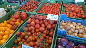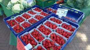Nun denn, heute war Markttag am Rathaus und unter der Pergola und wir waren zum Einkaufen am üppigst bestückten Stand vom „Gemüsehof Kraienhemke“.