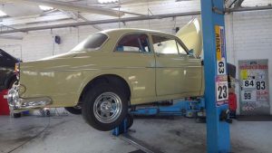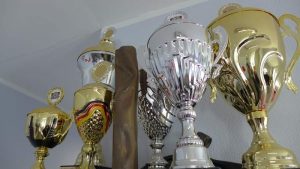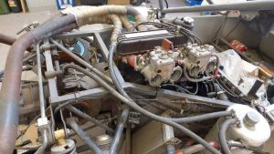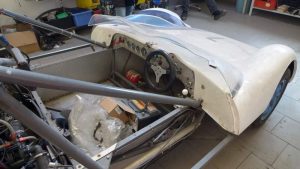 Man kommt in die Anmeldung und der Blick fällt sofort auf zahlreiche Pokale, die im Laufe der Zeit mit dem Rallyesport gewonnen wurden. Ich werde weiter in das „Arbeitszimmer“ des Seniors geleitet. Hier ist nichts normal. Es gibt zwar Sitzmöglichkeiten, aber das Gros der Raumflächen nehmen technisches Gerät und die Fiberglaskarosse eines ziemlich tief liegenden Sportwagens ein. Und genau da liegt eine der Schwerpunkte, mit denen Vater und Sohn unterwegs sind. Sie restaurieren und sanieren Oldtimer. Einige davon bekam ich zu Gesicht. Nicht jeder Besitzer solch wertvoller Fahrzeuge möchte, dass es bekannt wird.