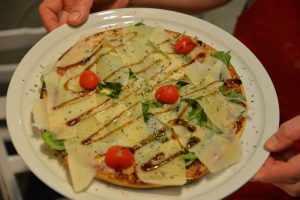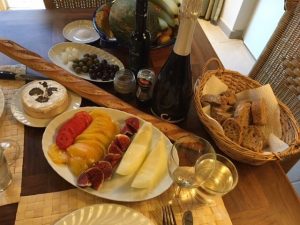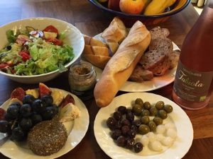 Natürlich mögen wir auch Pizza und Pommes, ab und zu, und dann selbst gemacht, gewürzt und belegt. Sogar Basilikum wächst nämlich in unserem Gärtchen. Tomaten sowieso, in rauen Mengen. Feigen und kleine Weintrauben haben wir neulich auch geerntet.