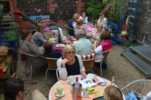 Und was wir nicht aus eigener Ernste haben, das kaufen wir 3 km entfernt im Hofladen Kraienhemke. Hier gibt es sogar Kuchen, Brot, Käse und noch viel mehr. oder auf den Hammer Wochenmärkten oder in einem der nächstgelegenen Naturkostläden. Um das Eingekaufte zu transportieren, haben wir Taschen dabei und orientieren uns auf das Örtliche, Regionale und Saisonale. Mein „Waschbrettbauch“ ist deutliches Indiz dafür, dass man damit nicht verhärmt – das Gegenteil ist der Fall.