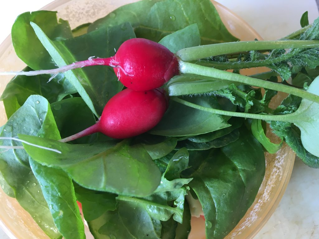 Da wir seit März ein Minigrundstück der Stadt begärtnern dürfen, gib es fast täglich Beigaben aus eigener Ernte.